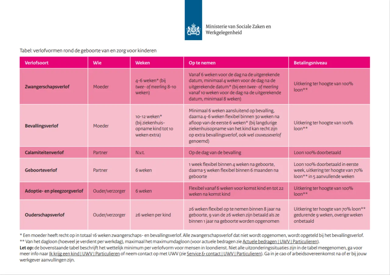 Vaak associëren mensen het begrip ‘verlof’ met vakantie. Maar als werkgever krijgt u ook regelmatig te maken met andere soorten verlof, zoals zwangerschapsverlof, geboorteverlof, ouderschapsverlof en calamiteitenverlof. De rechten van medewerkers is bij de meeste vormen van verlof vastgelegd in de Wet Arbeid en Zorg. Zie het bijgevoegd overzicht.